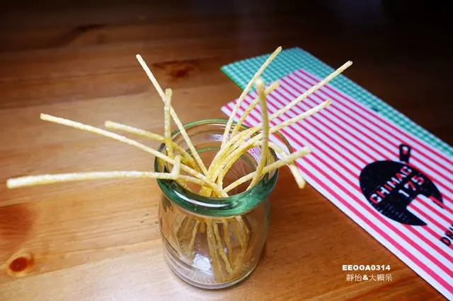 點餐後先送上小點心,炸酥的義大利麵...吃起來好香脆,有著淡淡的麵條香味