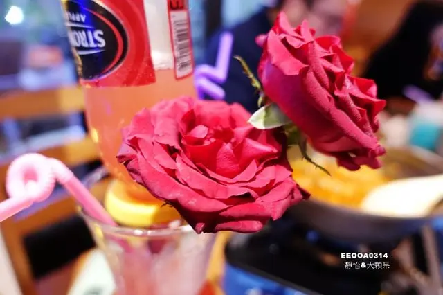 大紅色的玫瑰花高雅又浪漫~也難怪我還沒喝就覺得醉了..不知不覺就被收買了