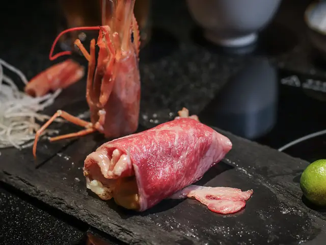 天使紅蝦經過一點點炙燒逼出了濃郁的香氣,蝦子本身的甜Q滋味不在話下,海膽濃郁香甜,外層還包上一層大約一分熟的和牛(可調整熟度),簡直就是一口吃進海陸精華,有多銷魂不用我說你一定想像的到。