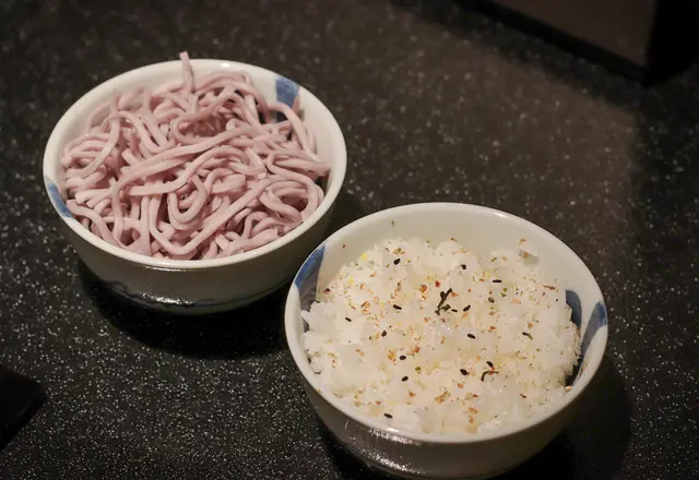 ▲附餐是山藥麵與白飯,山藥麵好吃
