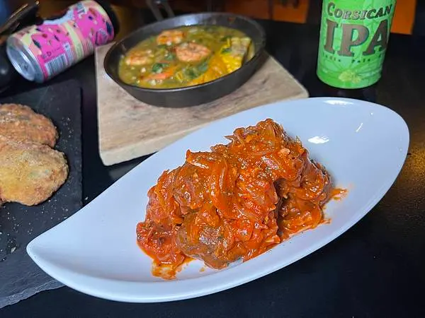 風乾鹽漬鱈魚與蔬菜、辛香料燉煮拌炒,