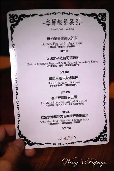 菜單及酒單會不定期更換,讓顧客有更豐富的選擇。