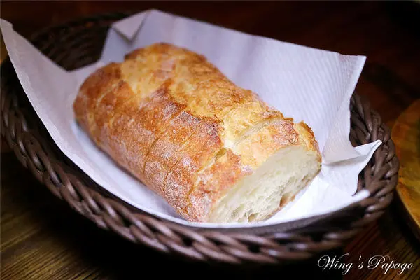 因為蝦油實在太香了,忍不住又單點了一份40元的店家自製長棍麵包來沾醬食用,