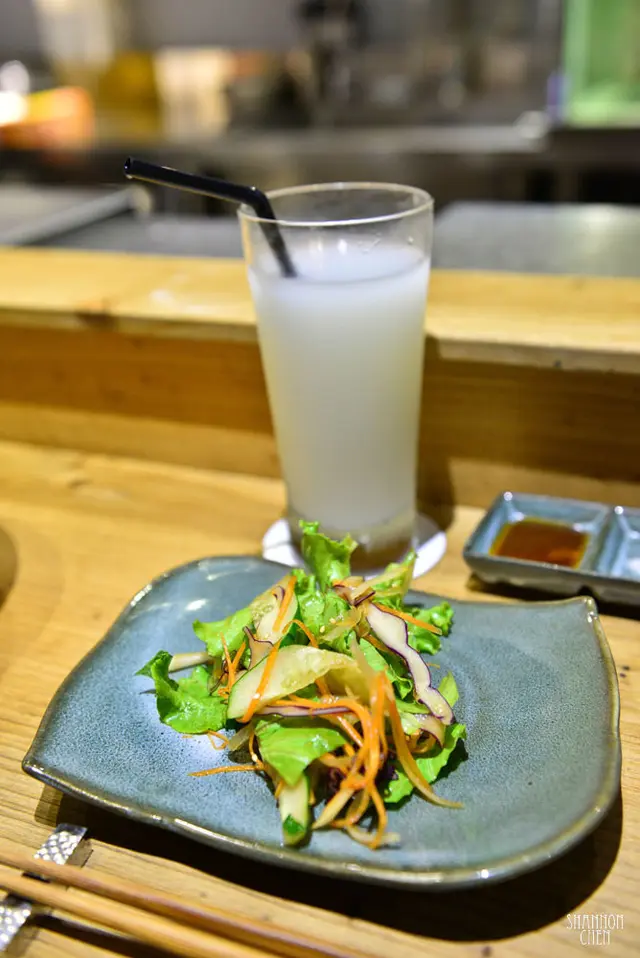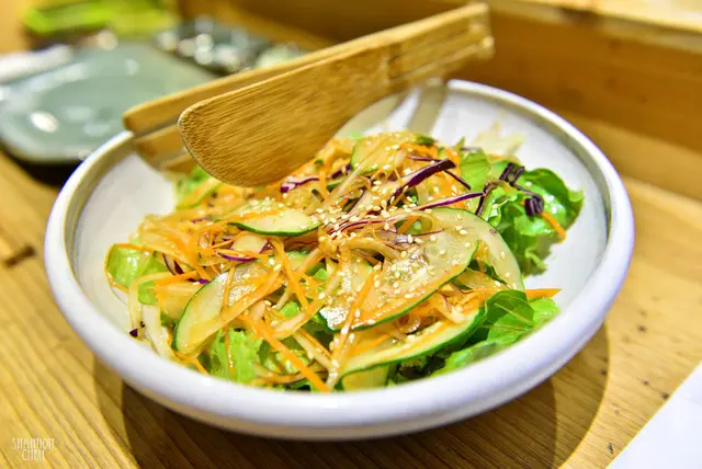 沙拉新鮮度還可以但就覺得菜有點軟軟的感覺(感覺切好拌好放在那兒了),味道就是和風醬還OK~