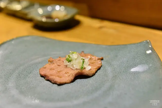 搭配上他們調味過的洋蔥,品嘗起來QQ的口感非常好,味道也很香!!這可能是我一年多來吃過最好吃的牛舌了~而且這厚度我覺得算蠻厚的!!