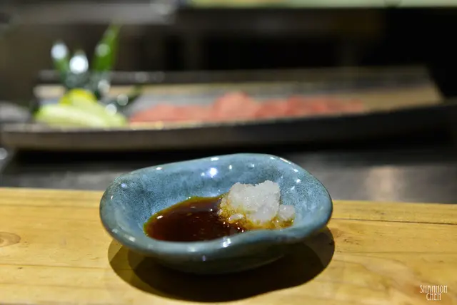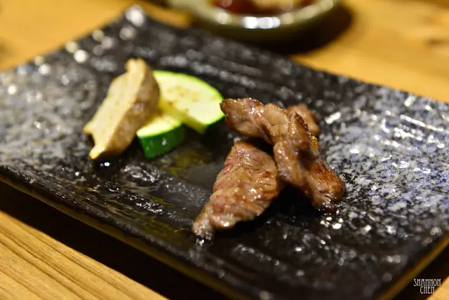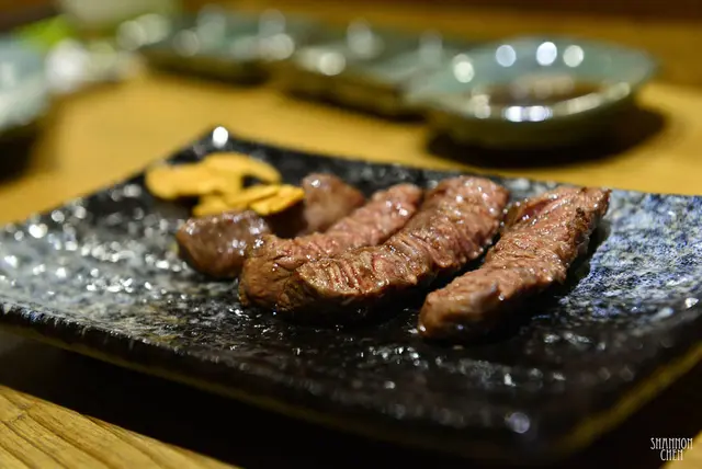 不過小姐是說最好先嚐嚐原味牛肉,再試著搭配蒜片吃吃,我本身對於蒜片很OK接受但是S不喜歡所以只吃原味也是很不錯的,這個比較沒有前面幾個鮮甜不過一樣嫩口囉,搭配蒜片味道就超微變重些,就也很不錯吃!