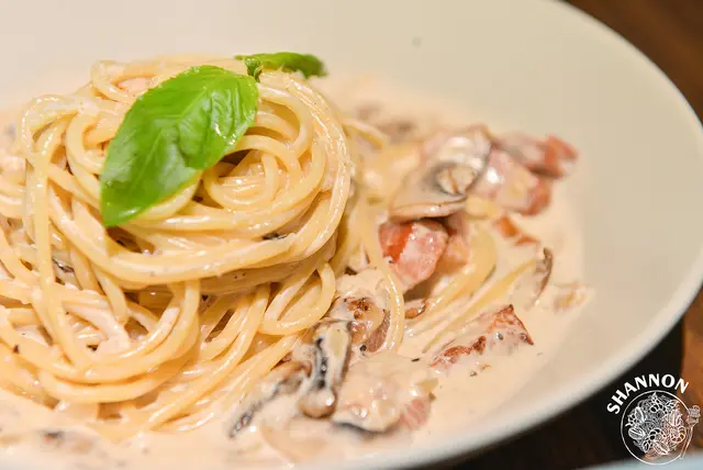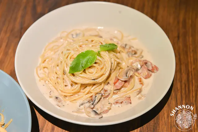 想說培根蘑菇可能都只是碎渣而已,不過了看照片培根挺多的鹹香的氣味搭配麵條一起享用就挺適中的!