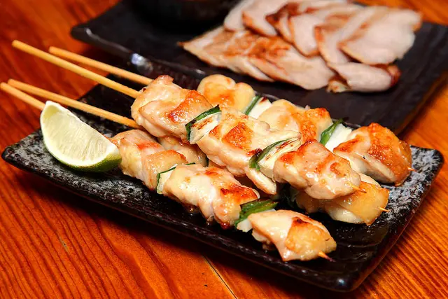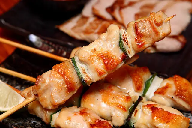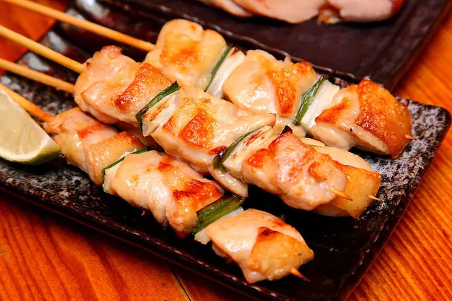 鹽烤雞肉串,是使用雞腿肉不另外刷上醬汁,直接鹽烤