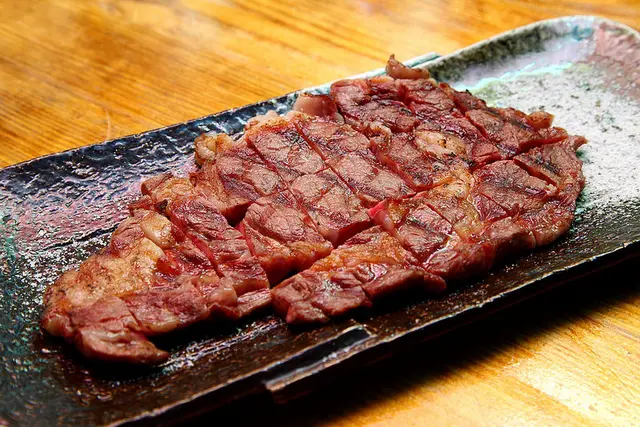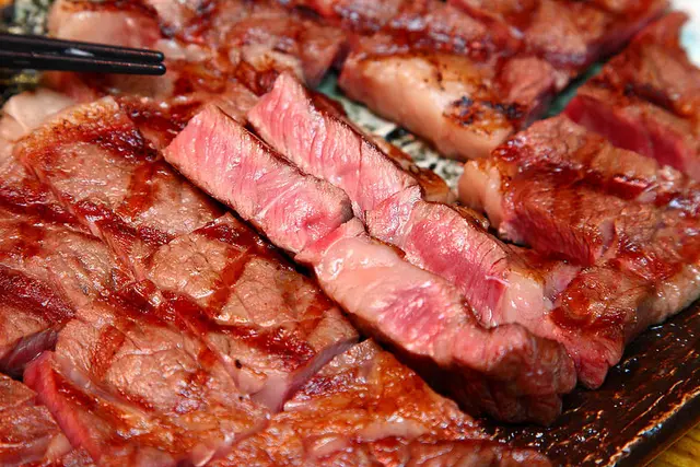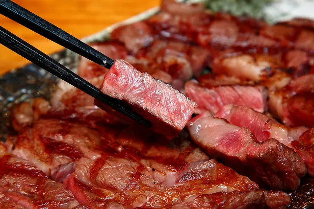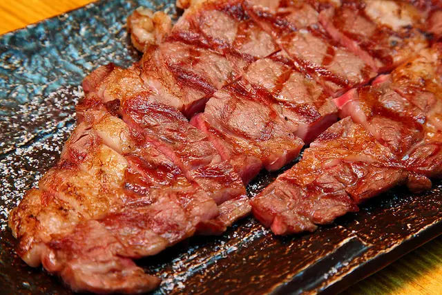 川賀燒烤居酒屋使用的是美國安格斯黑牛,選用油花分佈均勻的肋眼牛排部位