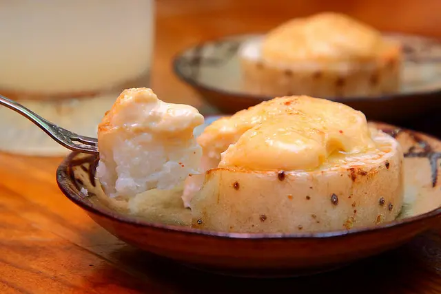 入口綿柔外皮帶著水嫩脆感,如果閉著眼睛吃大概會認為這是馬鈴薯吧!