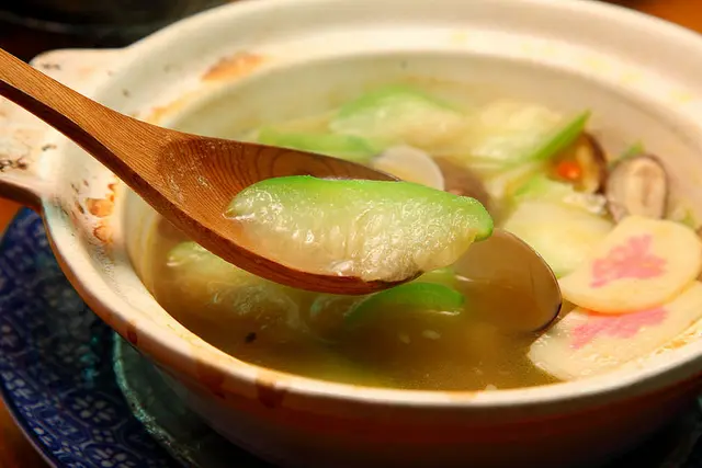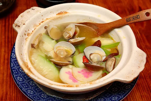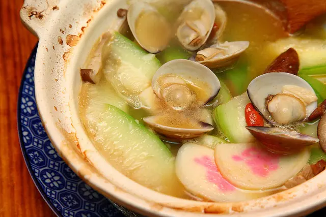 使用陶鍋燉煮,湯汁充滿了絲瓜的甜與蛤蠣的鮮,喝上一口甜鮮兼具,會讓人不自覺舔舌的鮮甜高湯