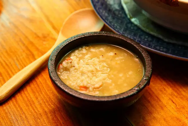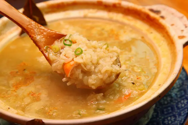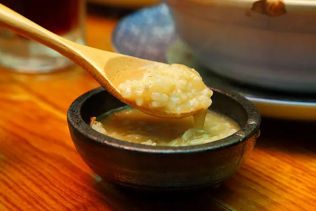 當你吃完螃蟹,記得不要把湯汁喝掉,然後把一些蟹膏刮進湯裡,川賀燒烤居酒屋會加入米飯煮成雜炊