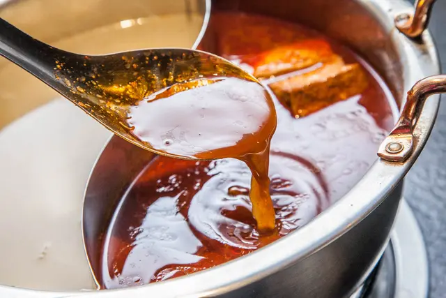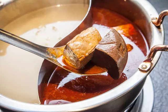 與一般火鍋店管狀的漿類不一樣,辣上癮極品麻辣鴛鴦直接給你一大顆!霸氣!