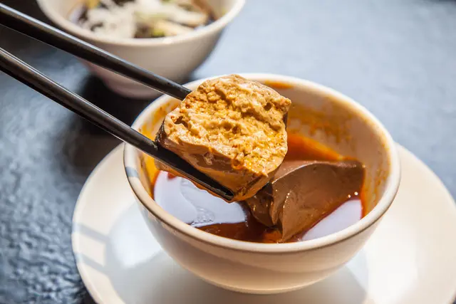 這裡的鴨血口感超軟嫩,搭配麻辣湯底一口湯一口鴨血超過癮,豆腐與一般豆腐也不大一樣,口感就為紮實,中間有許多了孔洞,吃到時候要注意,這豆腐可是會爆漿的呢