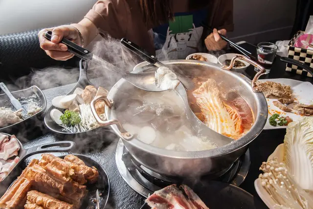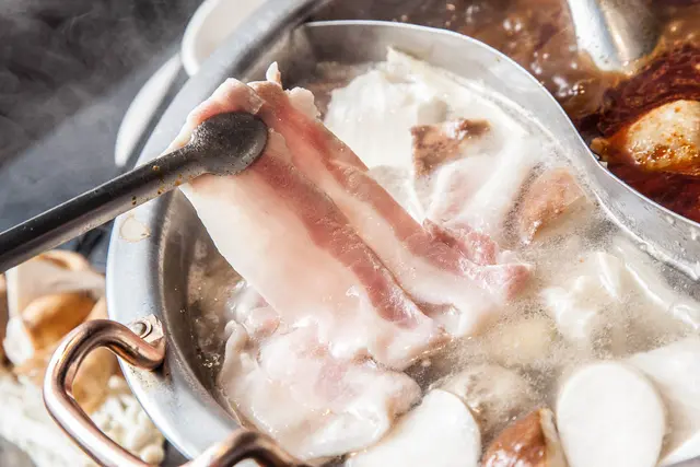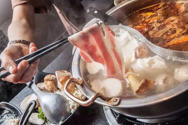 可以先涮酸白菜鍋,五花肉跟酸白菜鍋真的超搭的,酸白菜的酸香可以去除減低肥肉部分的油膩感
