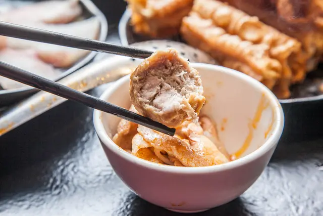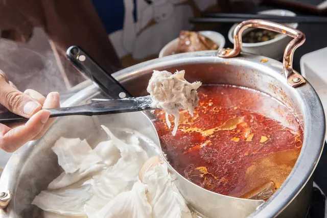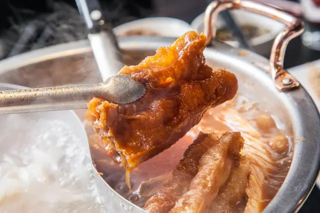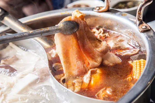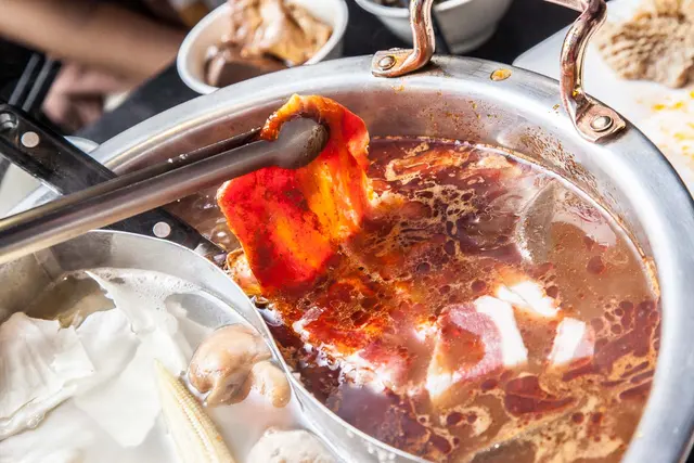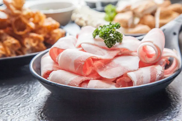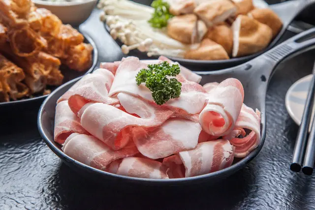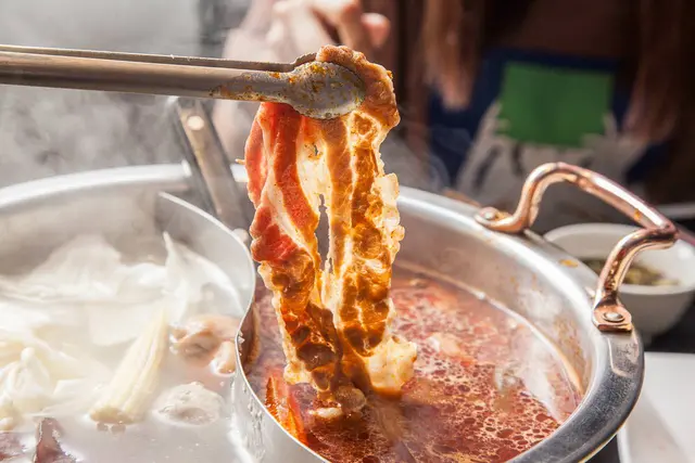 涮麻辣鍋也好吃,麻辣鍋的辣可以襯托出五花豬的油脂甜度,肥肉部分吃起來QQ的,整體口感相當軟嫩可口