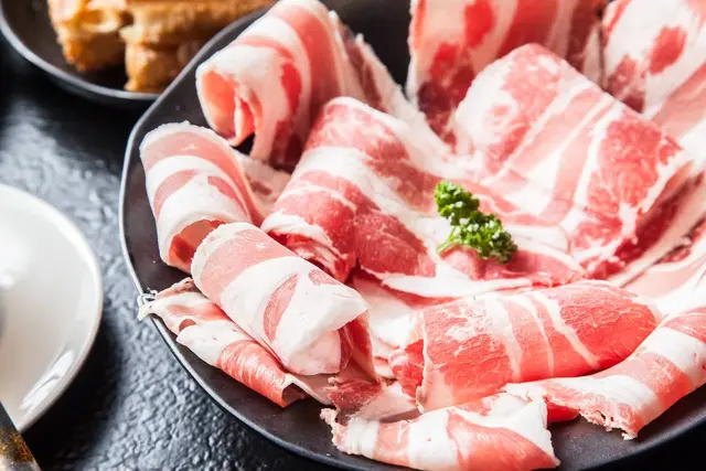 肥瘦相間的五花肉看起來超誘人的,這裡的肉類都是現點現切,份量也很夠誠意