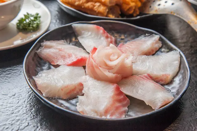 建議涮酸白菜鍋,藉由酸白菜鍋的酸香,讓鯛魚片的肉質口感更加細膩,鮮味也能較完整的呈現