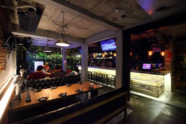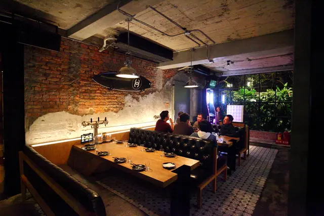 啤調客 Beeru共有兩層樓用餐區域,一樓是走比較悠閒慵懶的工業風格,有一個長長的吧檯,另外設置了兩個長沙發的用餐區,管線外露的水泥天花板,斑駁的磚牆,很有美式布魯克林區的風格,沙發區就很適合多人聚餐,另外還設置了鏢機讓大家試試身手