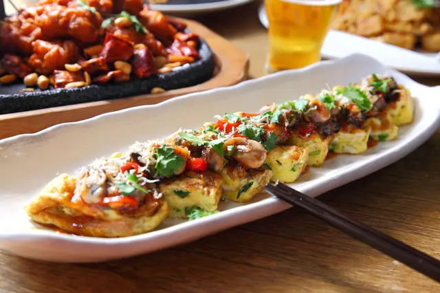 啤調客 Beeru的創意代表作之一,運用川菜中的名醬魚香醬搭配日式厚煎蛋,佐上酥炸小魚乾跟肥美的鮮蚵