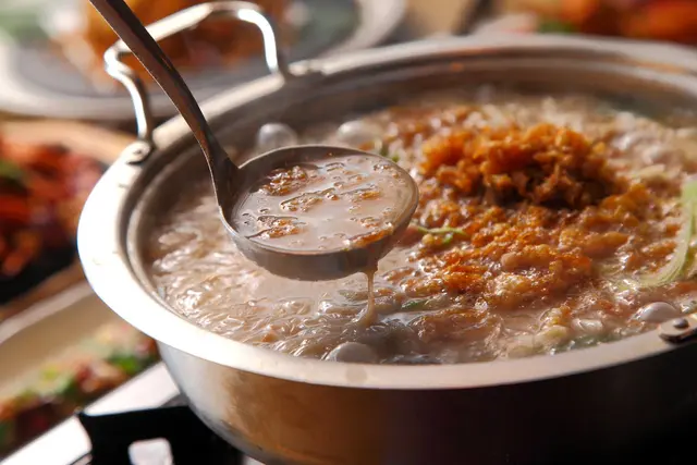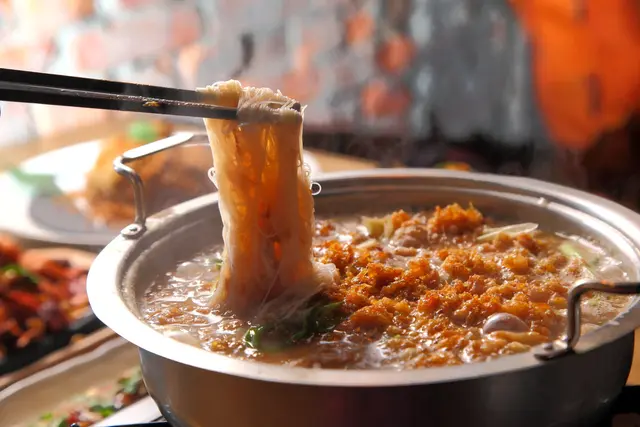 米粉更是這道菜靈魂,米粉吸飽湯汁精華,即使經過久煮一口咬下米粉在口中仍九迸發出脆口的彈性,不得不說這湯頭真得超濃醇的,蛋酥起到畫龍點睛之效,充滿芋頭甜、旗魚鮮的湯底伴著蛋酥的濃香,百喝不厭耶!