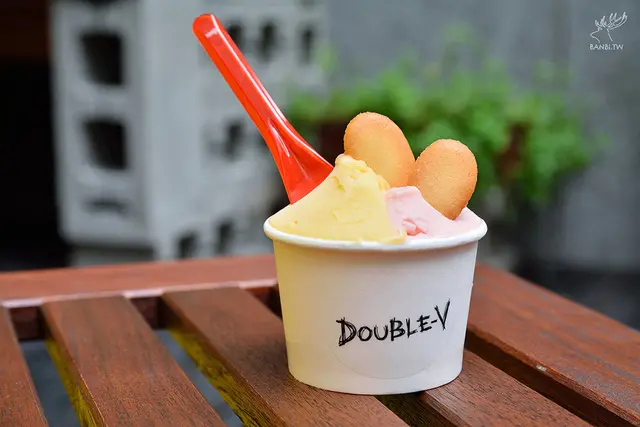 冰淇淋上方放了兩塊貓舌餅乾,底部則是蛋白餅碎,可以增加點酥脆的口感與不同的甜味層次。