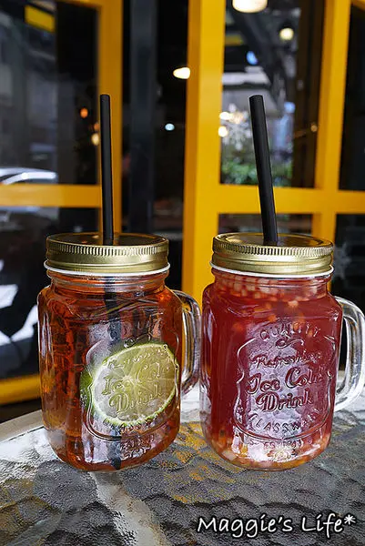 「天堂鳥冰紅茶」&「鮮釀水果茶」,左邊的天堂鳥冰紅茶是選用頂級鍚蘭紅茶搭配各式天然花瓣調製而成,不過我喝起來覺得清涼感偏重,鍚蘭紅茶的味道我倒是沒嚐出來。而原本我想喝的熱咖啡,也因為今天坐外面改為冰的鮮釀水果茶,裡面有許多新鮮水果丁,切得細細的,也方便直接用吸管吸取。