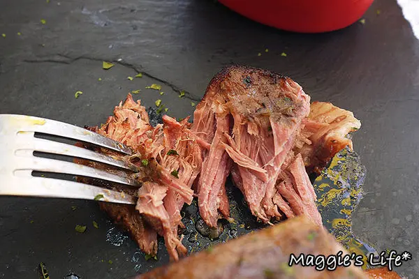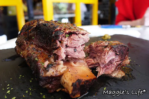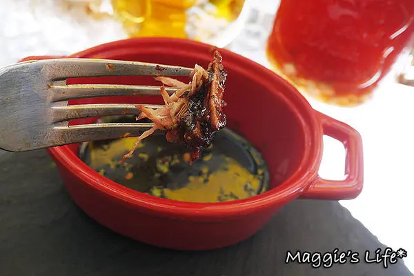 這雞腿份量很大,光看外皮就讓我猛吞口水,金黃色澤再灑上香料點綴,好吸引人!