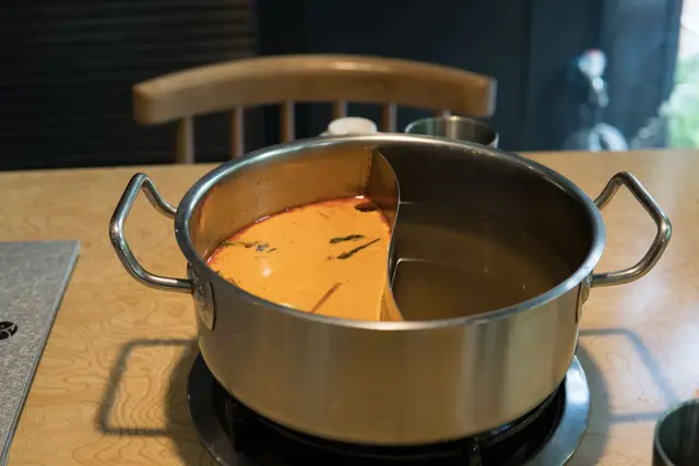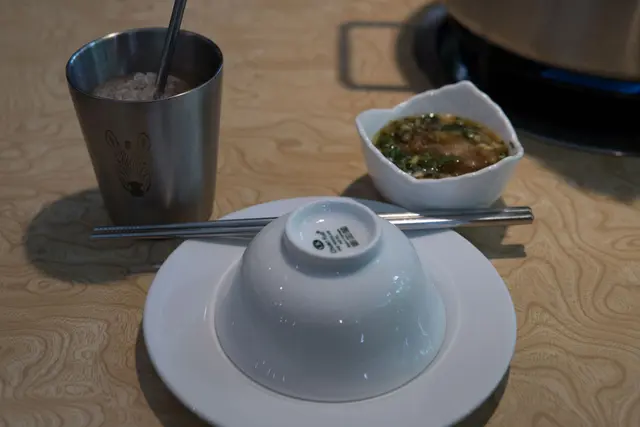 每一桌會先預放叻沙和昆布湯底,服務員提供菜單同時介紹叻沙湯底特色:以大骨、老母雞、昆布等8種蔬果熬煮、加上蝦頭、蝦米、椰奶和多種南洋香料,讓人津津樂道的還有最後煮成雜炊的黃金粥,看得出來忻殿堂對於自家叻沙火鍋的自信,於是我們今天每人加價NT.119獲得叻沙湯底