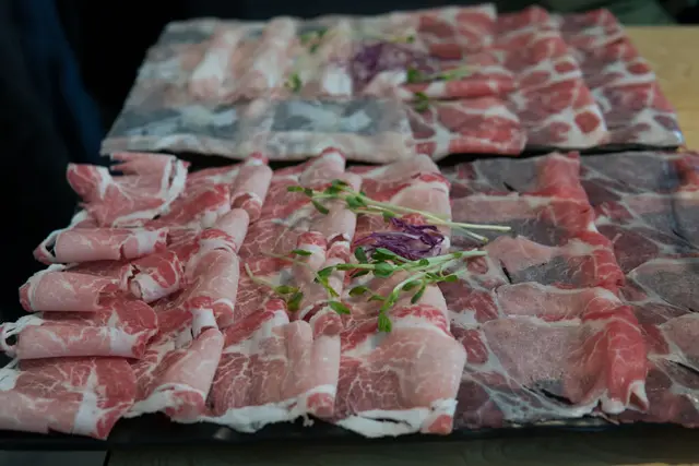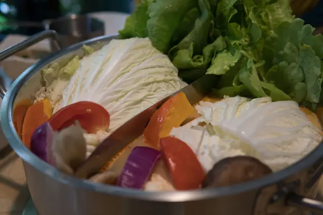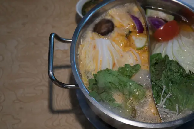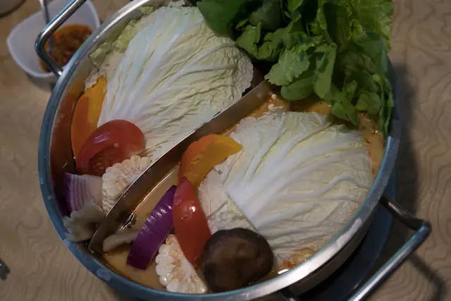 忻殿堂養生蔬菜盤也是讓人讚不絕口的特點之一,菜葉一片一片洗滌乾淨,色彩繽紛的讓人食指大動,更貼心的是,菜盤是由服務生直接入鍋熬煮,先讓湯頭不讓味道重的肉品破壞,可以喝到最甜美的原味