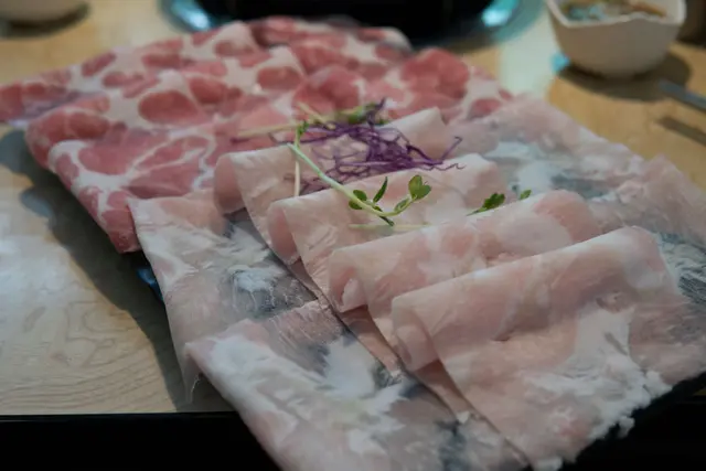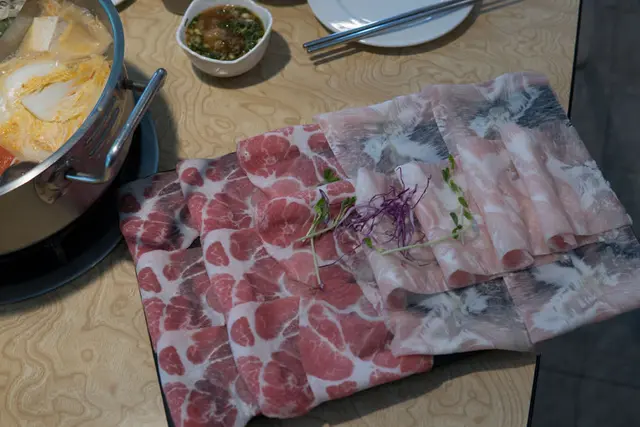 我們點了三隻小豬套餐,這肉盤色澤端上桌就讓人覺得點的超對!這幾乎是溫體豬等級,豬肉表層就像緞面般柔軟,不同部位的豬肉也有其顯著的口感