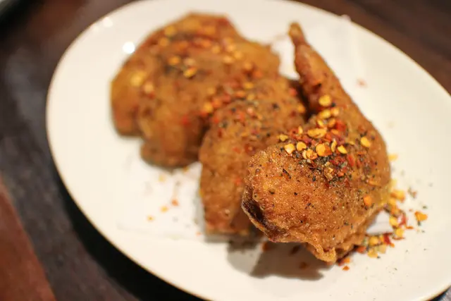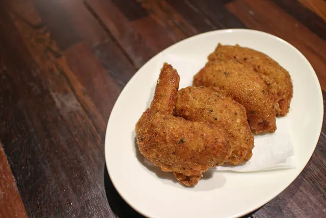 印象中我們好像點了三盤,一盤不辣、二盤辣味,這炸雞翅是標準的台式炸雞
