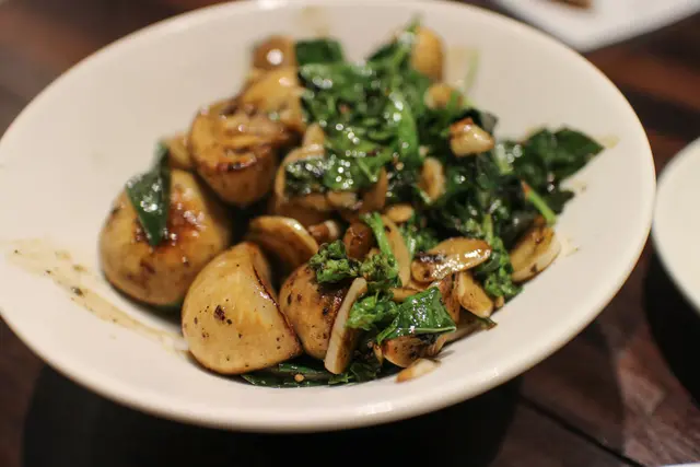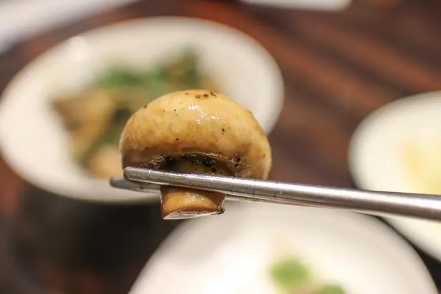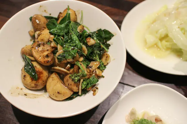 每次吃早午餐都很喜歡作為配料的炒蘑菇,又香又入味,沒想到這次當主角也是可圈可點,沒有切片的肥嘟嘟蘑菇,乾煸炒香加九層塔真的很不賴