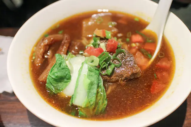 這湯頭非常特別,可能會推翻過往對於紅燒湯頭的印象,應該是大量番茄和滷蘿蔔的關係,湯頭清甜順口,不容易如坊間紅燒牛肉湯會有膩口或過鹹的問題