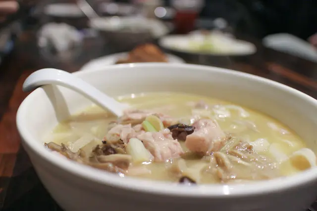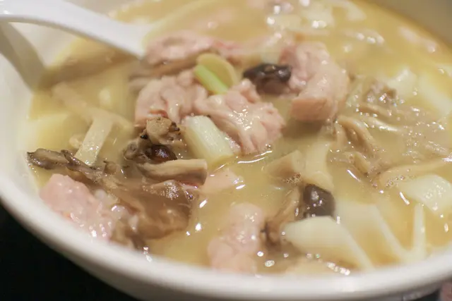 真的不是誇張,才一會沒有動湯匙,湯頭表面就形成薄油膜,沒錯!就知道多麼濃郁,每一口都撈的到雞腿肉和各種菇類