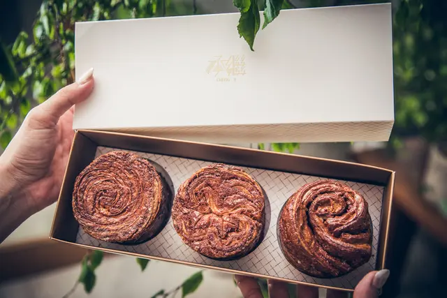 承繼 CHENG-JI的肉桂捲做法跟一般肉桂捲很不一樣,一般肉桂捲是捲起來切,而承繼的肉桂捲是將肉桂混合奶油與紅糖折進麵團裡作成肉桂千層,再用刀切成長條狀再手工捲起來放入模具中,每顆誤差值壓在約1g以內,確保每一顆肉桂捲的品質都相同