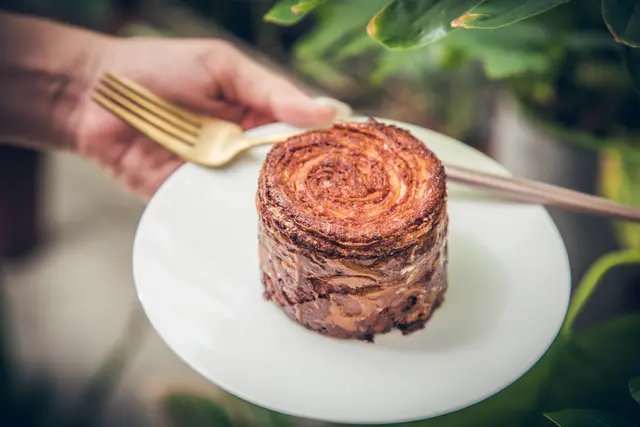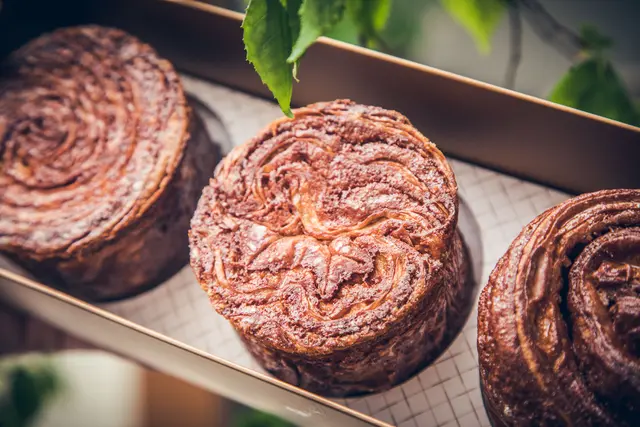 經典肉桂阿曼,表層有紅糖與奶油焦化融合的酥脆感及甜香香氣,一層一層的頂級肉桂餡、紅糖的美味交疊,香氣十足且不嗆,法式奶油高雅溫潤的乳感香氣,更增層次風味,裡面濕潤感也恰到好處,經典不虧為經典!