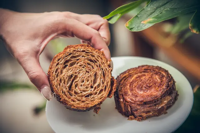 肉桂巴布卡,肉桂巴布卡的口感是比較接近美式肉桂捲,輕盈柔軟的麵團以雞蛋揉製,酥脆外皮與滿滿蛋奶香氣,裡面也比較濕潤,口感也較為棉鬆,外酥內軟的肉桂巴布卡相當適合入門者來品嘗唷