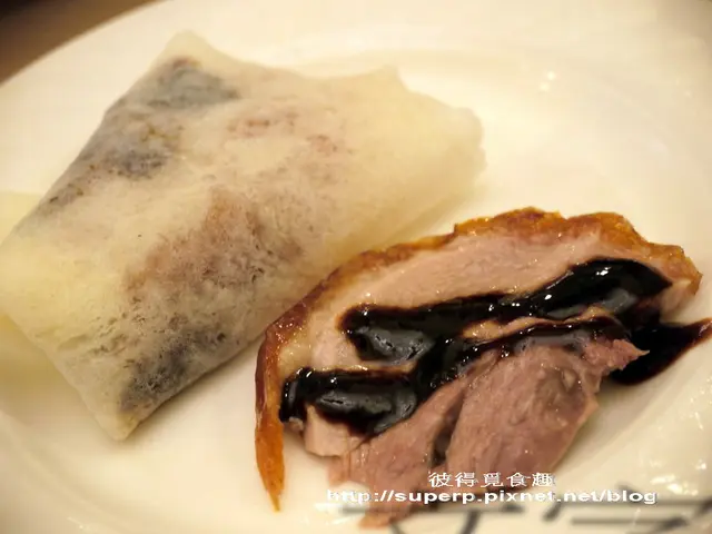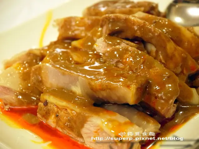 烤鴨二吃$2,000(師傅現場片鴨,服務員幫每個人包鴨餅,服務的誠意十足。這烤鴨的水準極佳,皮脆肉嫩,跟荷葉餅以及甜麵醬和蔥一起包起來吃真的是人間美味,完全不輸龍都或喜來登辰園的烤鴨,大推!)