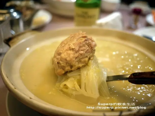 沙鍋白燒獅子頭$500(獅子頭感覺是有打過水的,非常嫩滑而且有味。高湯喝起來很像是老母雞跟金華火腿以及白菜長時間去熬的,濃郁鮮美,已經很接近驥園的水準了。加一些來泡飯也非常美味,大推!)