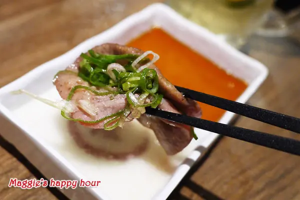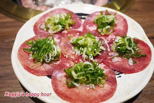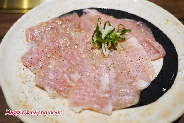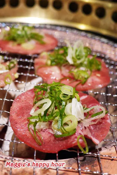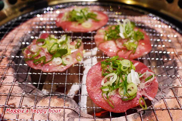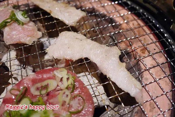 服務人員幫忙我們烤鹽蔥牛舌,乾杯的牛舌片得薄薄的,和在別處吃過的牛舌厚度略有不同,口感上不會給人吃舌頭的感覺,如果怕吃動物舌頭的人應該可以嚐試。