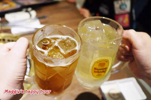 當然這八點的一起乾杯時間,也換來免費的飲料一杯,想喝什麼隨意點,我點了一杯葡萄柚角High來喝,它喝起來和萊姆口味的口感很相似,都是酸性的水果類的碳酸飲料。其實喝一點酒精飲料配燒肉感覺挺好的!(未成年勿飲酒/請勿酒駕)