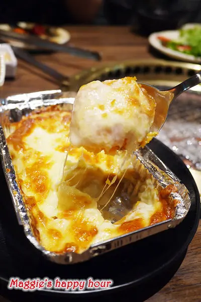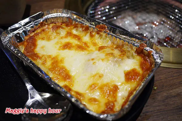 「地瓜洋芋起司燒」這也是許多燒肉店有的菜色,上層薄薄的一層起司,底下盡是滿滿的地瓜和洋芋,這二種食材我平常就愛吃,後來獨自嗑掉大半,還蠻過癮的。