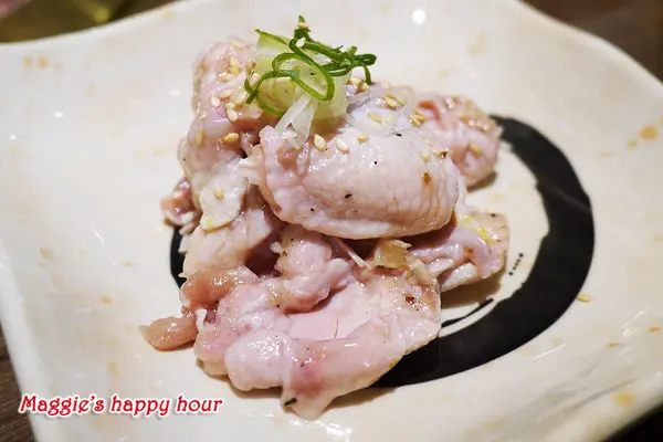 「雞軟骨」我超愛吃這個,但點菜時服務人員有特別提他們家的是腳踝的部份,送來時果真是帶皮的,跟平時吃的不一樣。