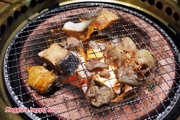 炭火的烤爐熱騰騰的上桌了,烤爐的火力大小還可以調整,旁邊一圈吸力頗強的抽風設備,讓我吃完燒肉居然沒有一身臭味的離開,這感覺有夠讚!