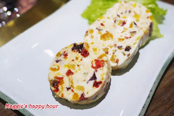 「水果起司」濃郁的起司和綜合果乾的完美結合,吃起來有起司的香滑和果乾的果肉,這真好吃!
