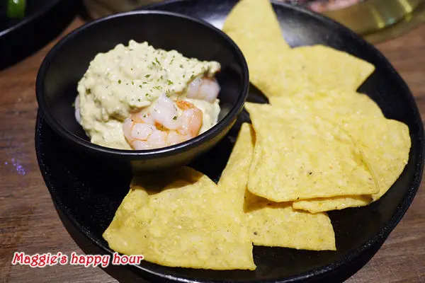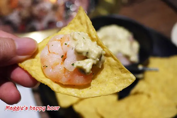 「玉米脆片佐鮮蝦醬」酥脆的玉米脆片大氣的加上Q彈蝦仁和特製塔塔醬,這可是聊天配啤酒的好搭擋。