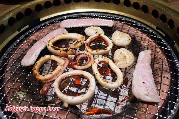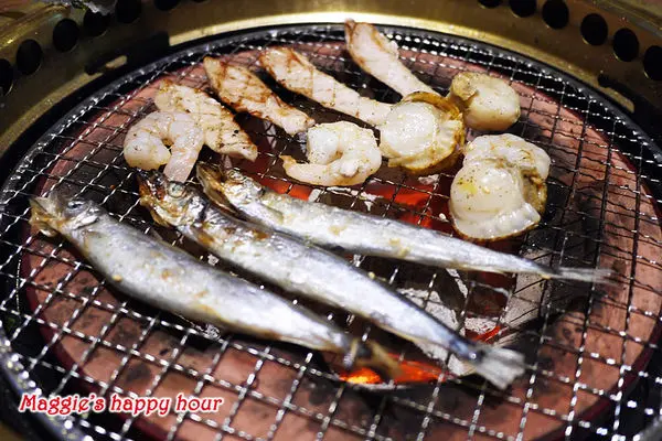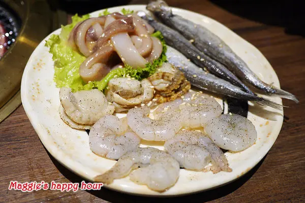 「綜合海鮮」有柳葉魚、章魚、鮮蝦及貝肉,海鮮的滋味是來燒烤店不可或缺的美食,每一種也都沒讓人失望。