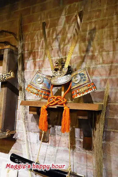 最裡面的整面牆上都是店家收藏的武士風的裝飾,營造出日本大和武士文化。也以武士道精神服侍主君般對待消費者。