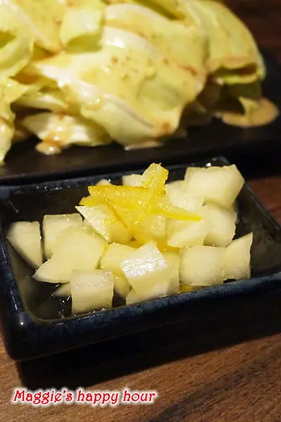 「柚香大根」是另外招待的小菜,用柚香蜜漬後的白蘿蔔非常清爽甘甜,吃起來好開胃,真想多叫一盤來吃,二種開胃小菜都讓我們很滿足!